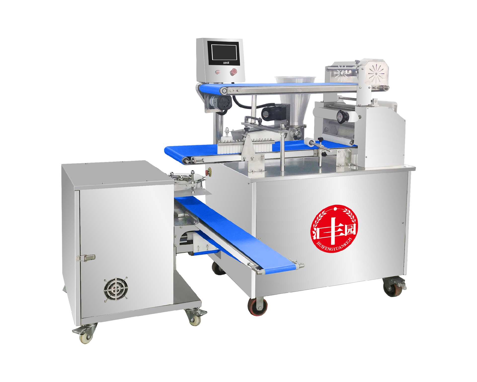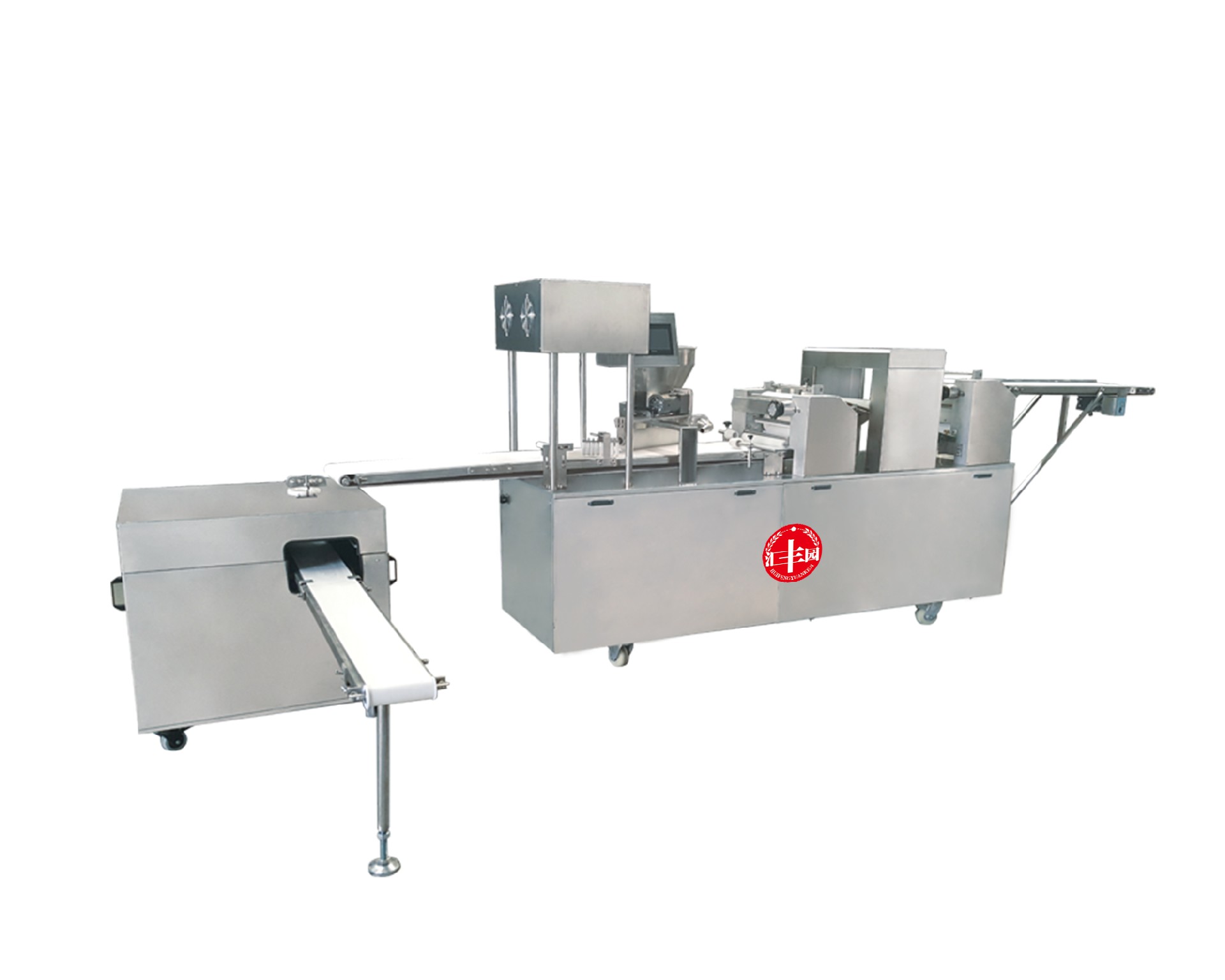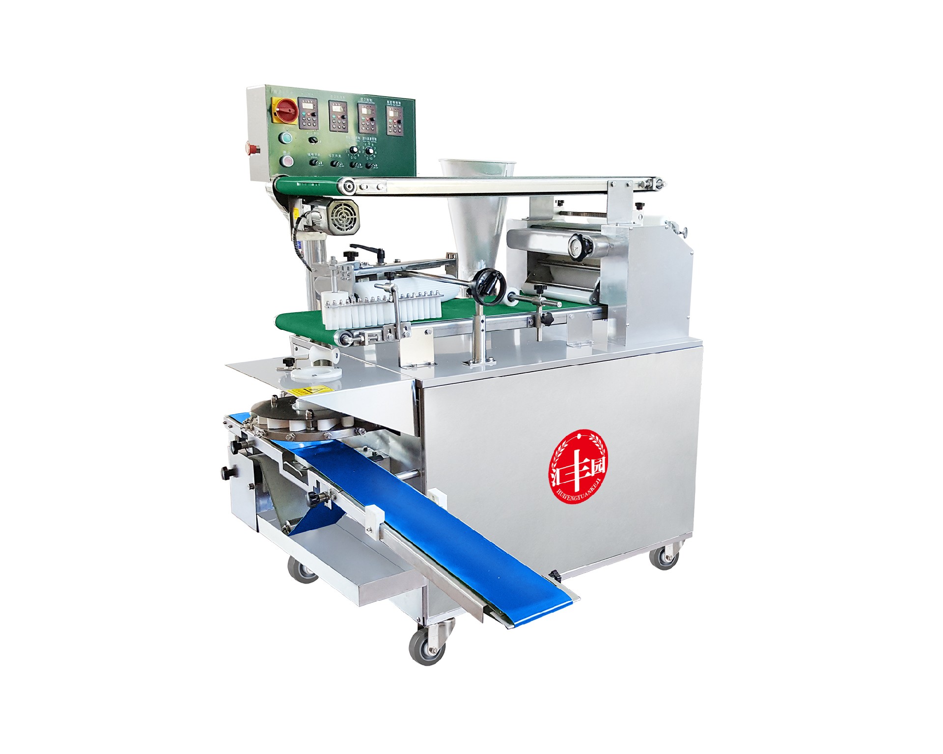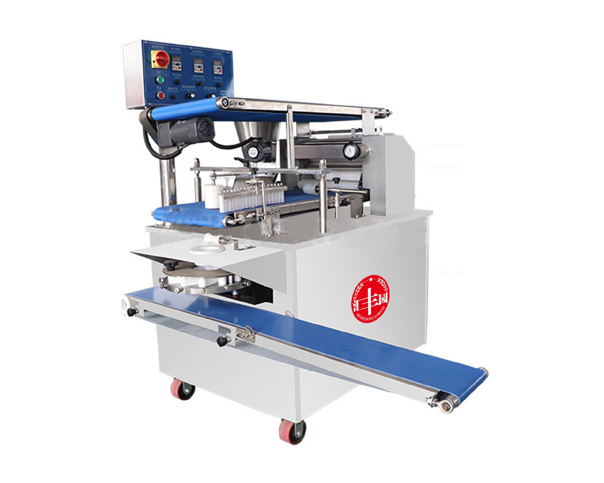 仿手工包子機(jī)采用仿手工搟面的方式將面皮壓成合適厚度。再由出餡部分將餡料填充至面皮上,經(jīng)由卷面部分卷成圓柱形狀,傳送至成型部分成型,過程中不會(huì)破壞面皮筋性,保持手工原味。全機(jī)的工作部分主要由:送面系統(tǒng)、壓面系統(tǒng)、送餡系統(tǒng)、卷面系統(tǒng)、成型等五部分組成。工作流程:供餡料斗-〉供面斗)-〉包制-〉切斷成型-〉傳送帶-〉醒發(fā)-〉蒸制;優(yōu)勢:自帶壓面系統(tǒng),采用壓面輥漸進(jìn)仿手工搟面方式將面皮壓成合適厚度,整個(gè)過程不會(huì)破壞面皮筋性。面皮柔軟筋道。 可加配值可生產(chǎn):餡餅和方型饅頭、圓饅頭等。成型盤采用軸承傳送,配合刀塊張合防止以前包子機(jī)做大包子成型堵面現(xiàn)象。有9褶或12褶和16褶花型供用戶選擇,進(jìn)口高分子材料刀塊利用科學(xué)原理均衡受力減小,解決了其它包子機(jī)成型刀塊靠一塊主刀推動(dòng)其它副刀運(yùn)動(dòng)易磨損,刀夾面粘面,易受天氣變化而熱脹冷縮不能正常生產(chǎn)的難題,促進(jìn)機(jī)器穩(wěn)定延長使用壽命。